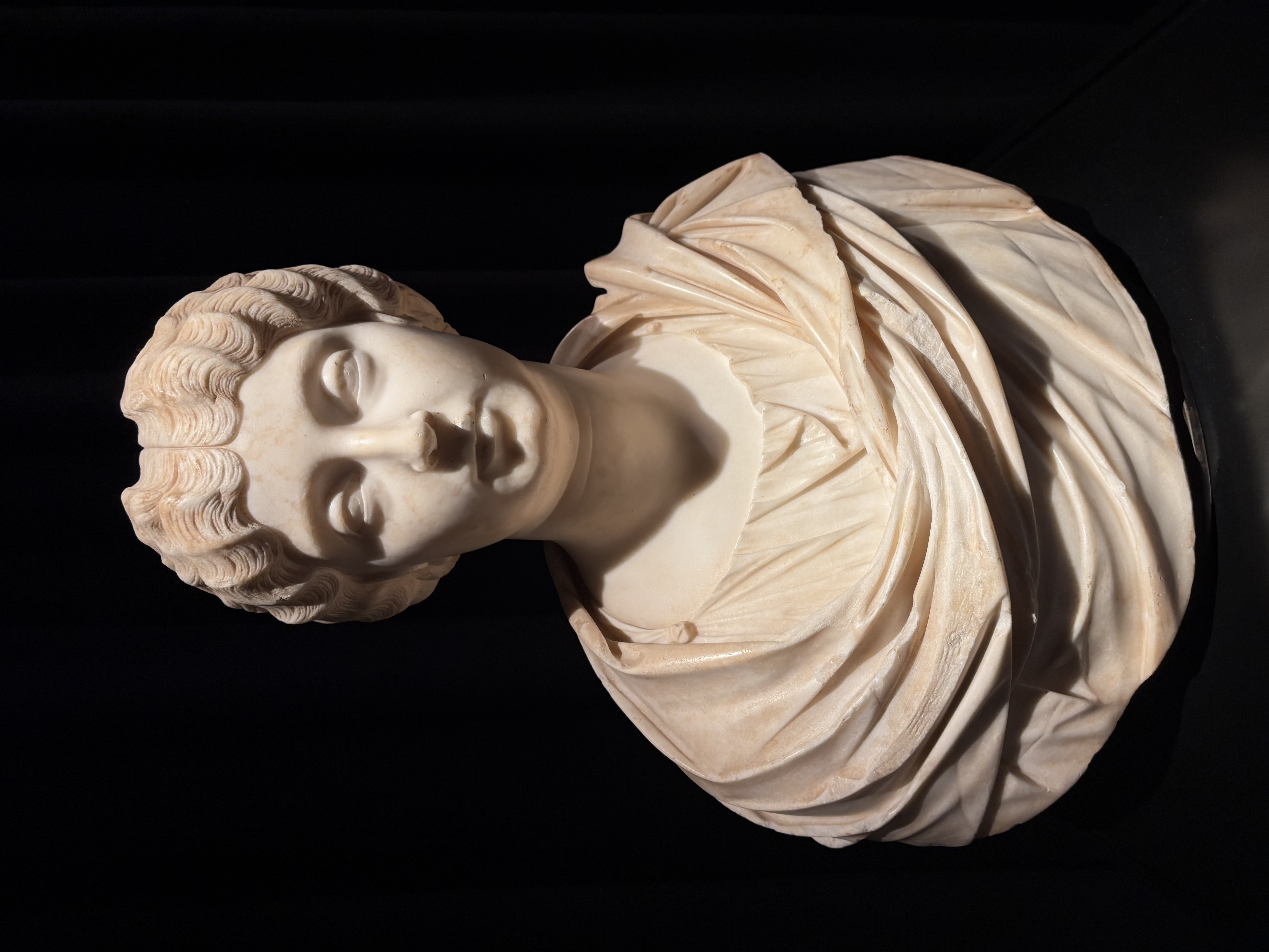 Faustine la Jeune (Faustina Minor) « Mater castrorum », « mère des camps ». Marbre, seconde moitié du IIe de l'ère chrétienne. Paris, Musée du Louvre. Les Romains proclament l'impératrice Faustine « mère des camps » en 174. Elle est la première à recevoir cette distinction. Grâce à leur force de combat, les soldats constituent la base du pouvoir impérial. En échange de leur fidélité, ils attendent un commandement militaire, mais aussi la protection de l'empereur, semblable à celle d'un dieu. Et pour la première fois dans l'histoire, une impératrice est impliquée dans cette sphère militaro-divine.